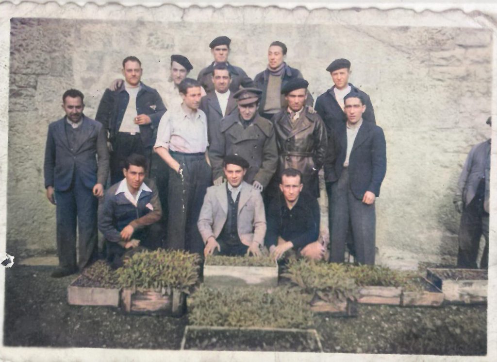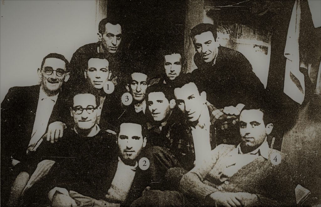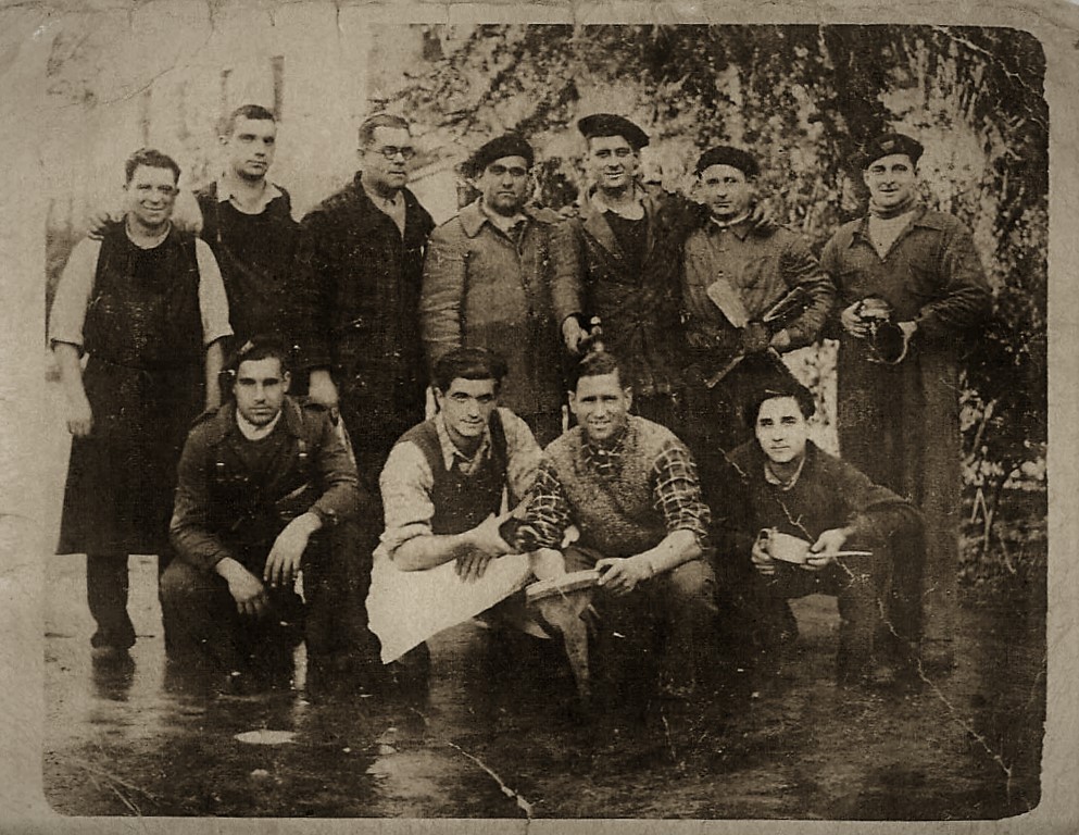 1942an preso politikoak laguntzeagatik Ondarretan espetxeratu zituzten hainbat lagun, tartean Manuel Sagardia (1) usurbildarra eta Anjel Aliri (2) zubietarra. Arg. ‘Herriak Badaki’ (Manu Aranburuk emana)