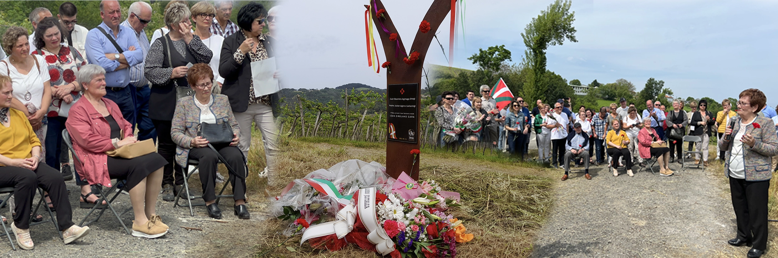 Bigarren memoria-gunea inaguratu genuen 2022ko maiatzaren 14an. Izan ere, faxistek 1936. urtean bi pertsona fusilatu zituzten Meaga inguruan, Oikia-Zumaiako lurretan: Bautista Aginaga Otegi usurbildarra eta Pedro Julian Agirre Gallastegi aiarra, hain zuzen ere.