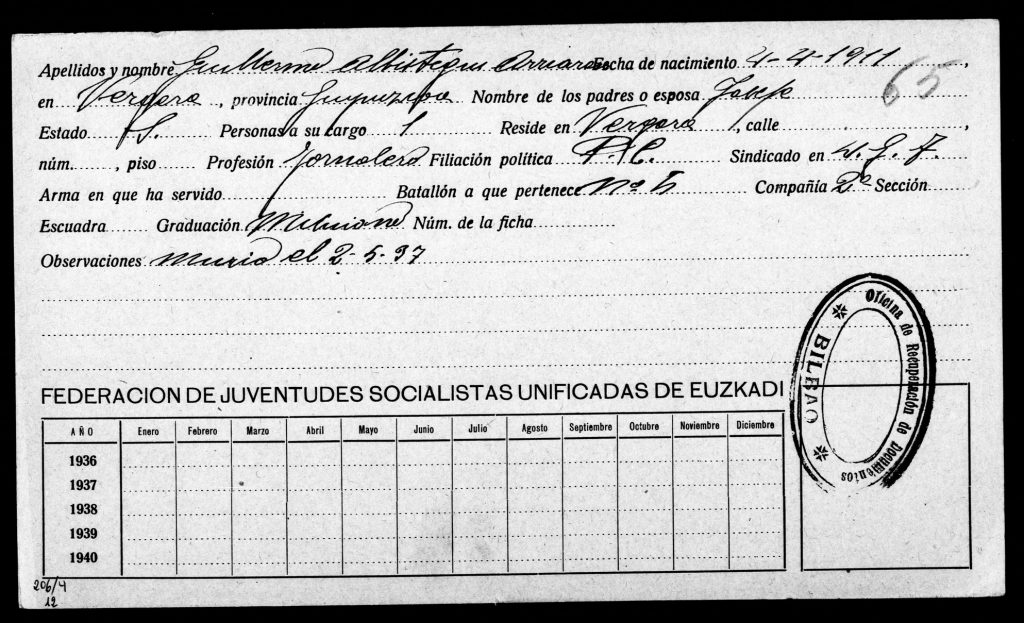 Centro Documental de la Memoria Historica PS BILBAO 64 F289