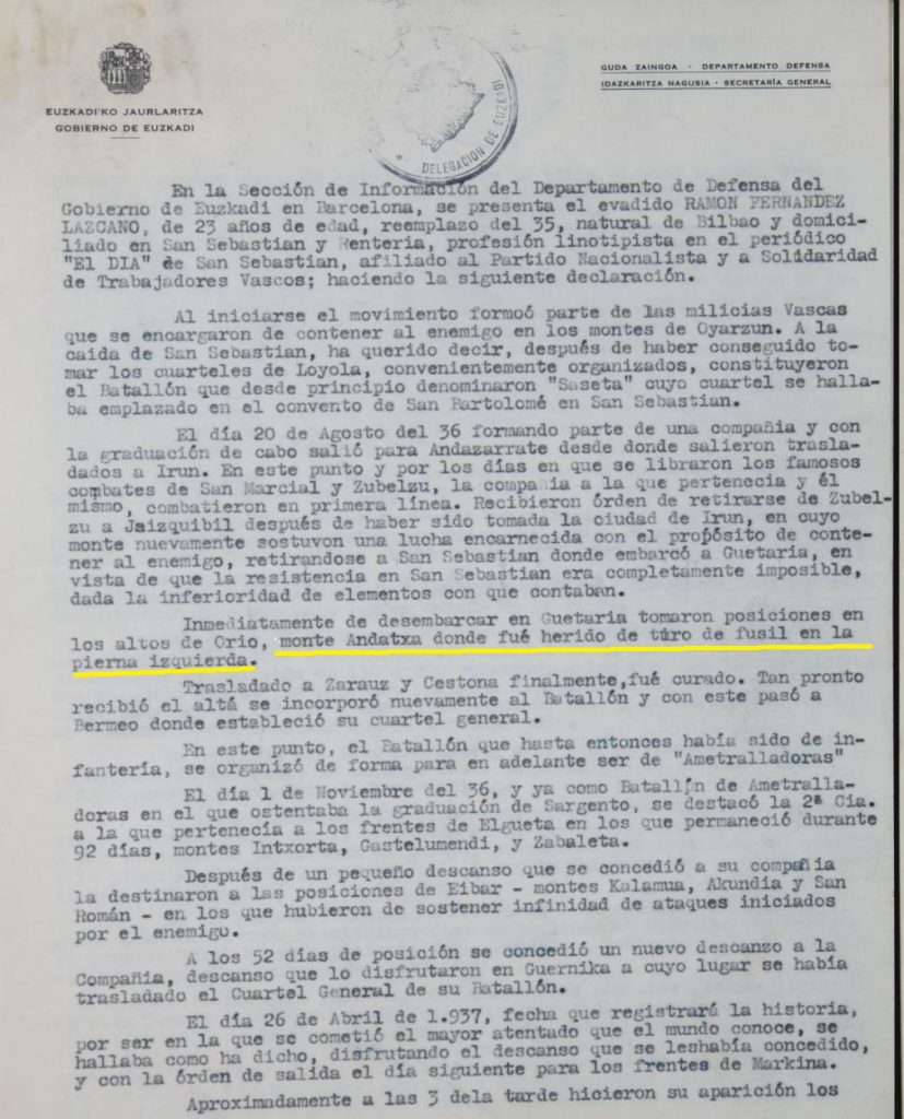 Euzkadiko Jaurlaritzako Guda Zaingoaren agiria