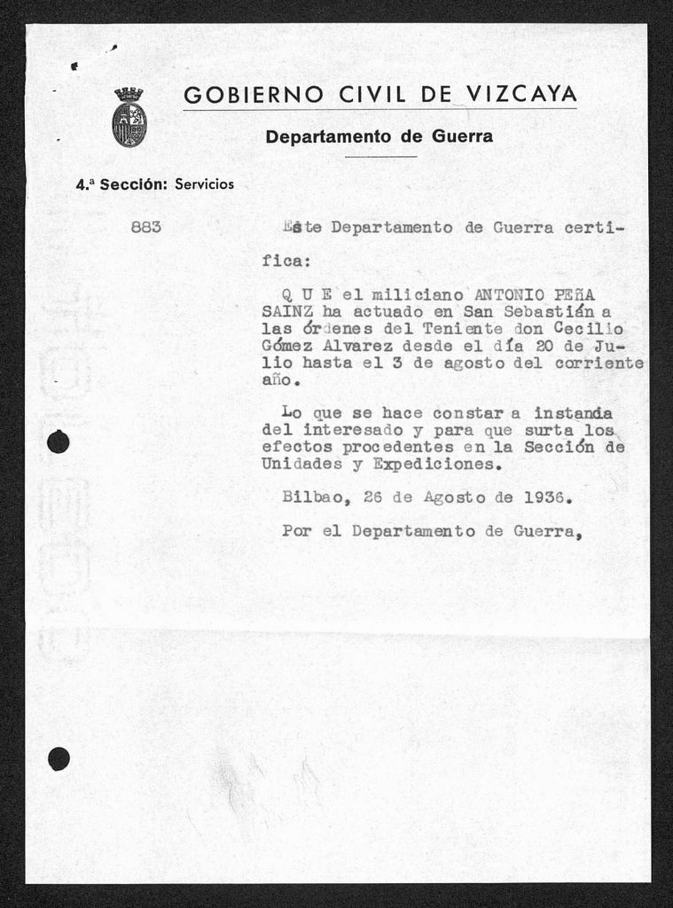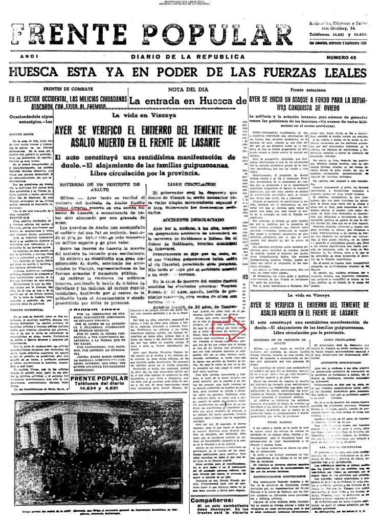 Gerora, errepublikazaleek askatu egin zuten eta borrokan jarraitu zuen, besteak beste, Loiolako koartela eta Maria Kristina Hotela berreskuratzen. Usurbilgo frontean zegoen 1936/09/07an eta bertan hil zen, Lasarte ingurutan, eskuzko granada baten leherketaren ondorioz. 32 urte zituen. Hurrengo egunean hileta omenaldi handia egin zioten Bilbon.