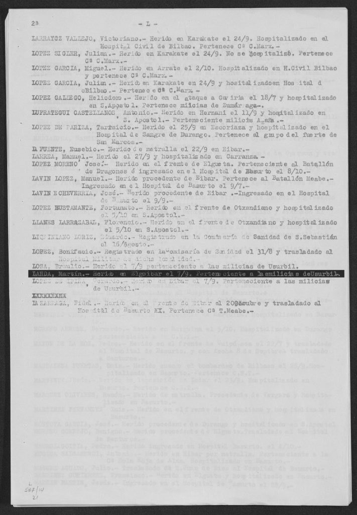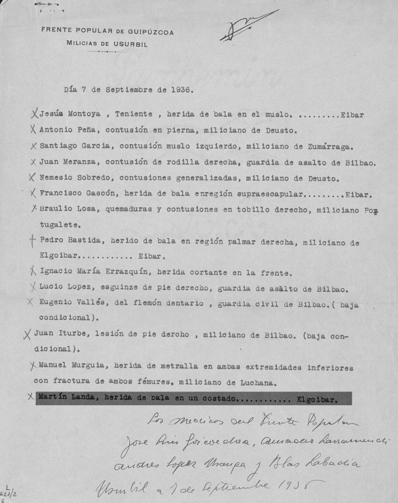 Elgoibarkoa izatez, Usurbilgo milizietako kidea. Zauritua Usurbilgo Frontean 1936/09/07an.