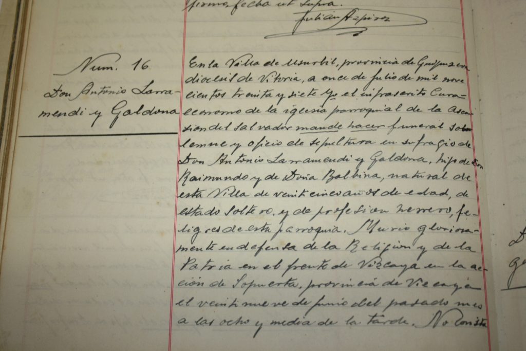 Antonio, berriz, kolpisten aldean borrokan hil zen, Sopuertan 1937/06/29an, 25 urterekin, seguruenik atxilotua izan ostean beren alde borrokatzera behartuta.
