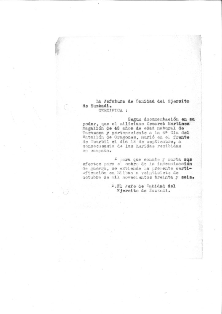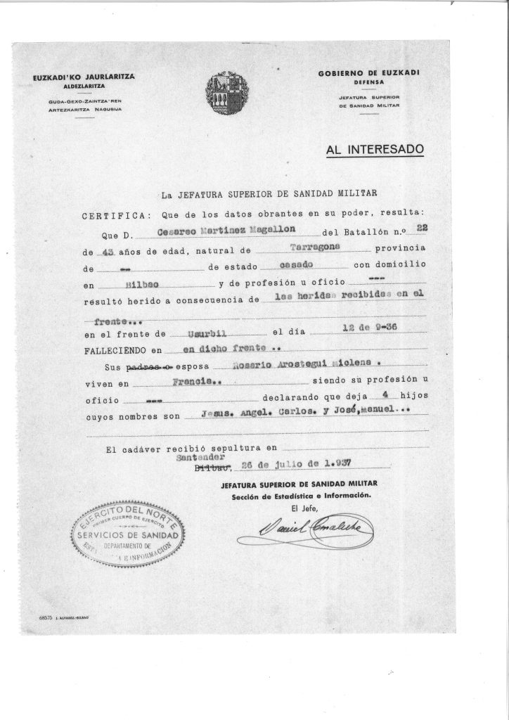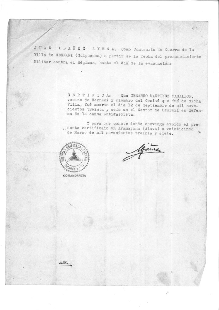 Gerra amaitu Hernaniko udalak egindako informeak (PARES artxibategiak)
