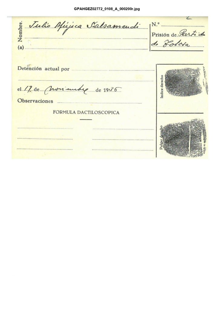 *Usurbilen jaio zen 1917/12/10ean. San Estebango ‘Berritza Barrena’ baserriko semea. 1936/11/19an Guardia Zibilak atxiloturik eraman zuen Tolosako kartzelera, Federiko Lasa eta beste hiru lagunekin. Bi aste geroago, 1936/12/01ean, hain justu, Guardia Zibilek Ondarretako kartzelara lekualdatu zuten eta Epaile militarraren aginpean geratu zen.