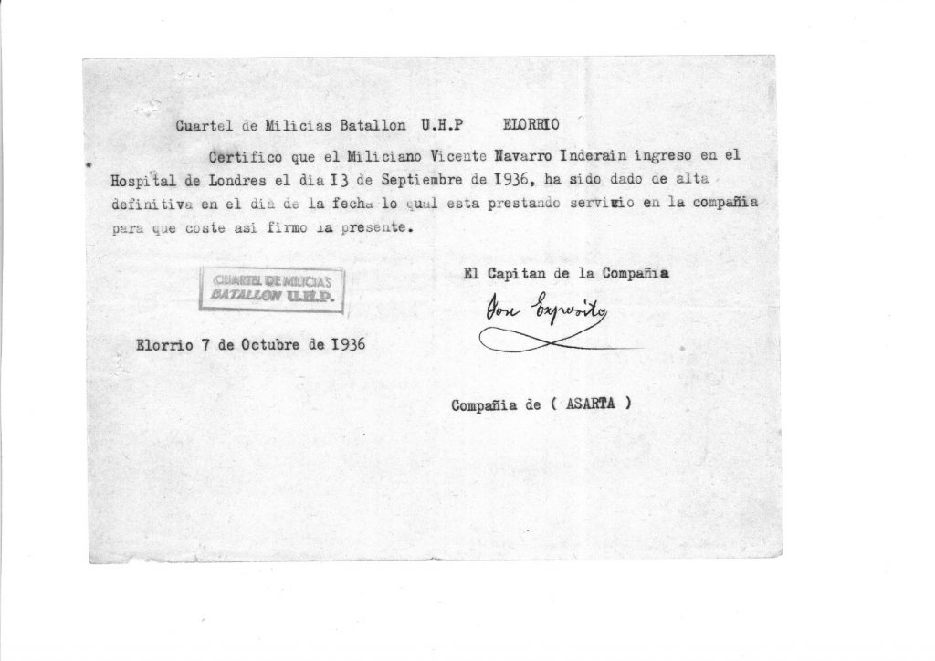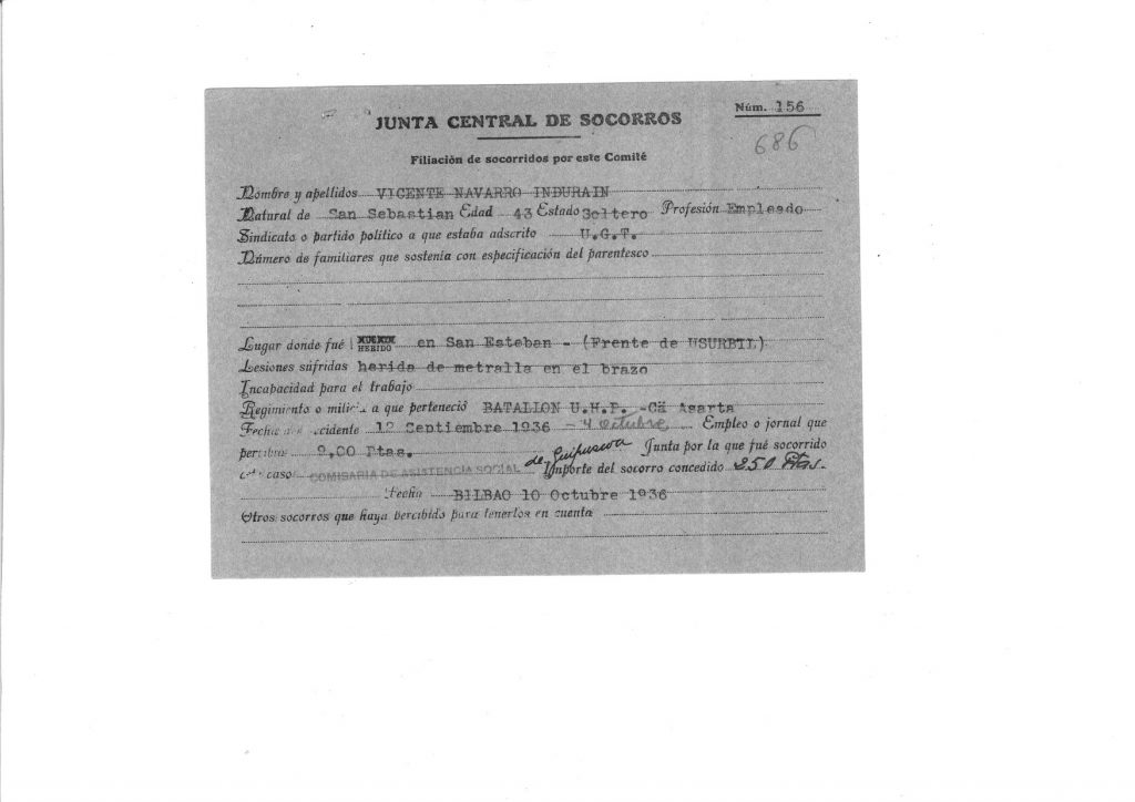 Donostian jaioa, 43 urte zituen 1936an. UGTn afiliatua zegoen. UHP Batailoiko Asarta Konpainiako kidea zen. 1936/09/12an Usurbilgo frontean, San Estebanen zauritu zuten. Hurrengo egunean Donostiako Hotel Londrese-ko ospitalean ingresatu zuen metraila zauriekin. Urriaren 7an alta eman zioten Elorrion.