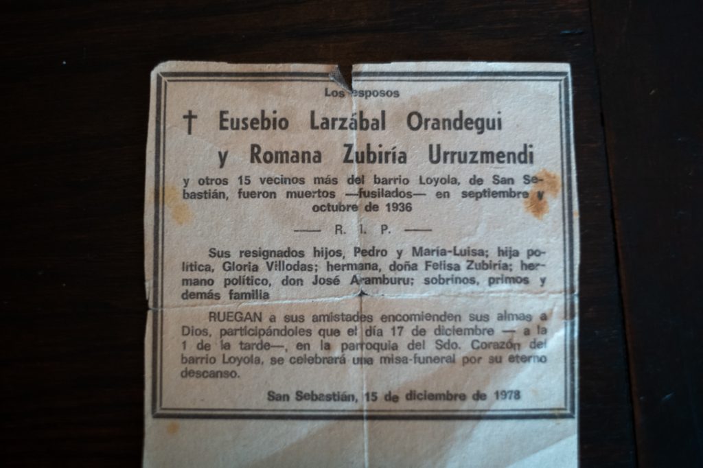 Dakigula, Romana Zubiria Gipuzkoan fusilatutako emakume bakanetakoa dugu.