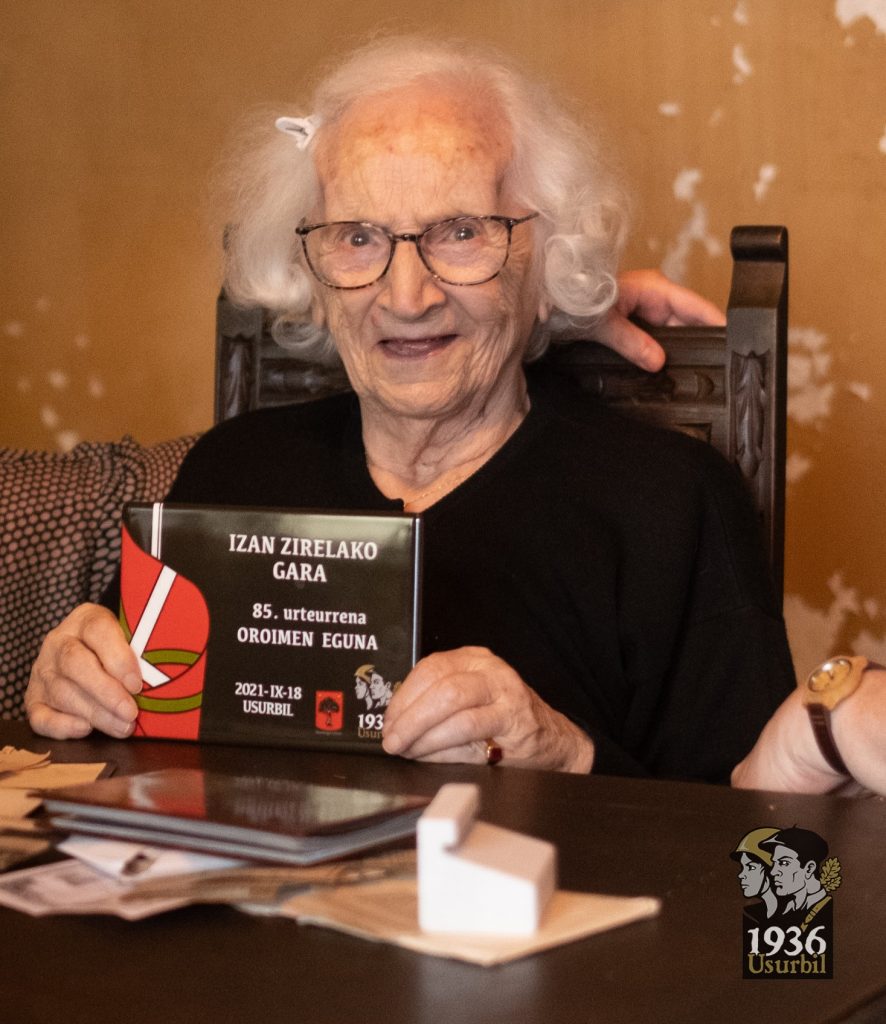 Maria Luisa Larzabal Zubiria bere alabari elkarteko oroigarria etxera eraman zitzaionekoa (2021eko iraila)
